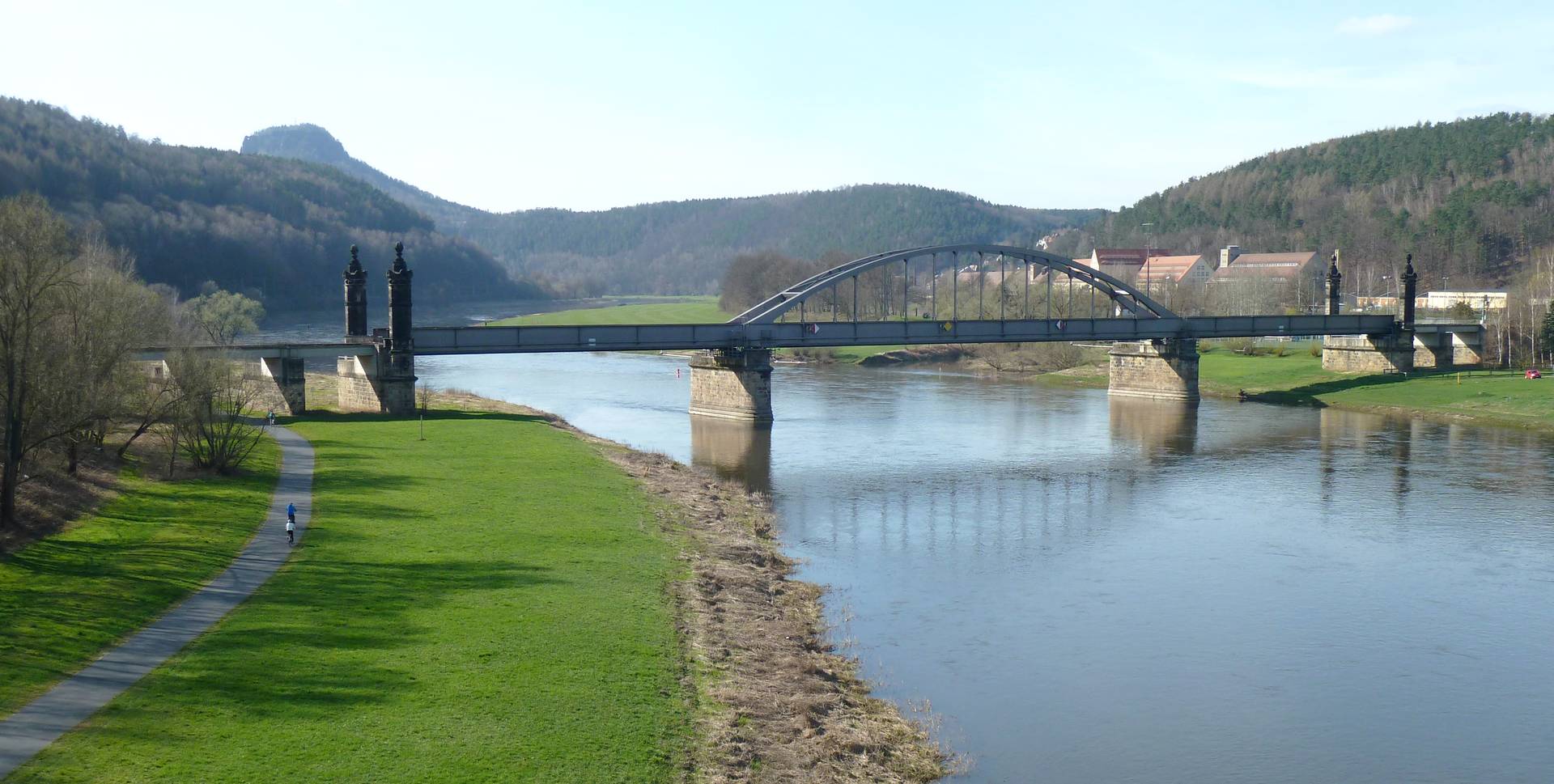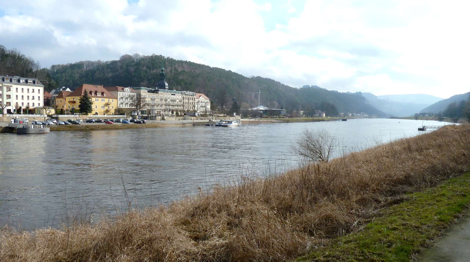 Vom Cacheort aus hat man einen schönen Blick auf die Elbe und Bad Schandau.