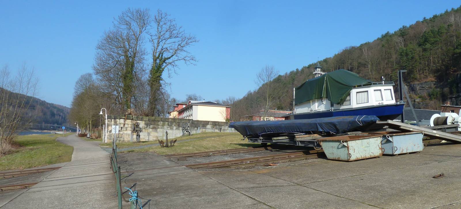 Auf dem Weg vom Hotel zum Cache kamen wir an einer kleiner Werft mit den Gleisen ins Wasser vorbei.
