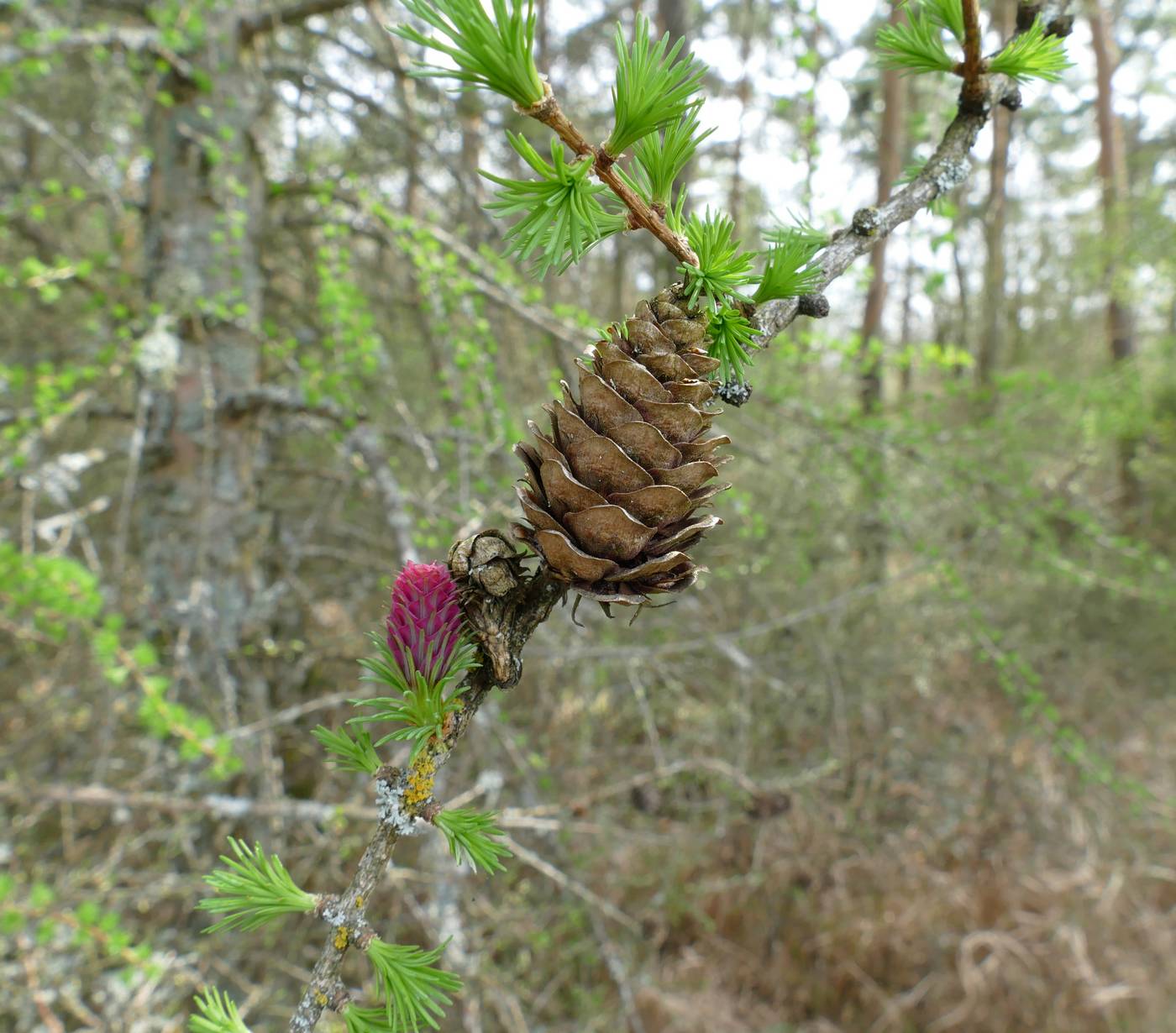 Neben dem Flugfeld blüten die Lärchen, deren schöne weiche neuen Nadeln mit dem