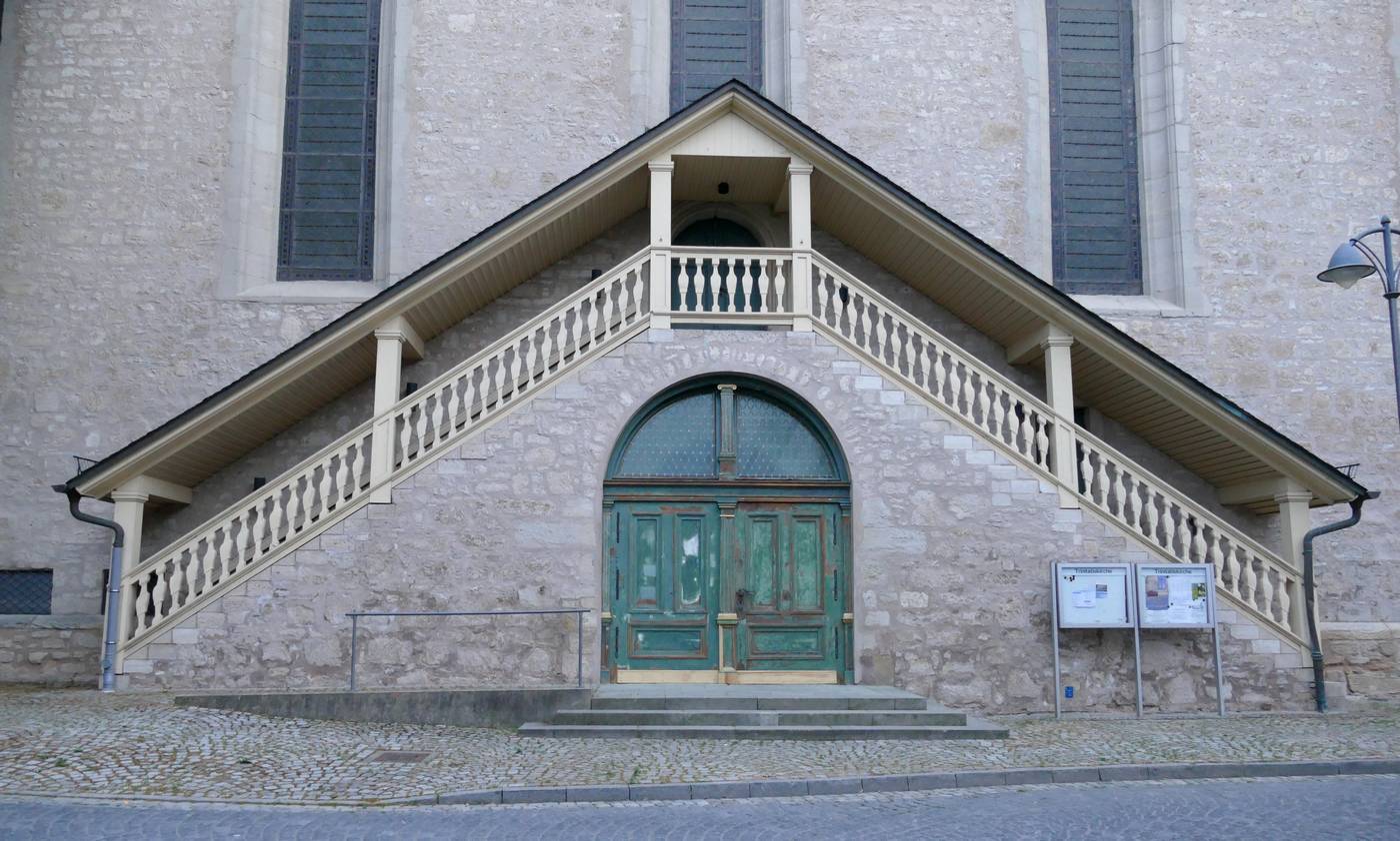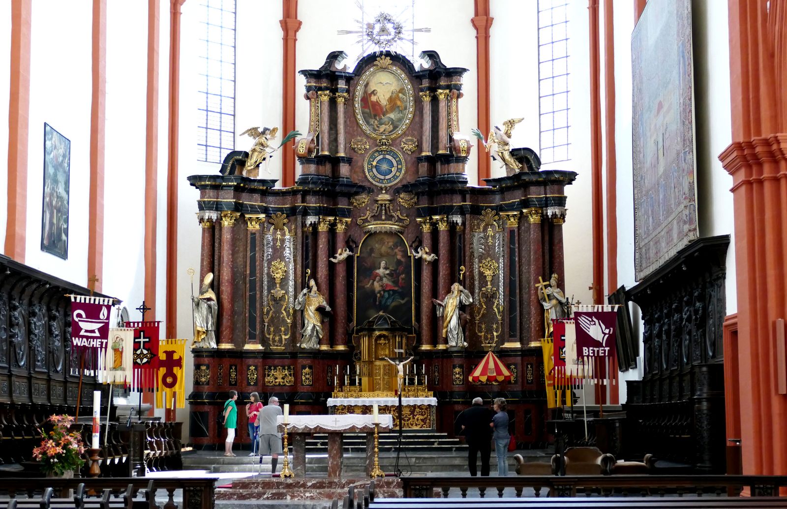 Am Abend bei einem Spaziergang suchten wir den Cache bei der Kirche St. Trinitatis und fanden ihn recht schnell. Die Kirche hat 2 interessante Treppenaufgänge auf beiden Seiten der Kirche.
