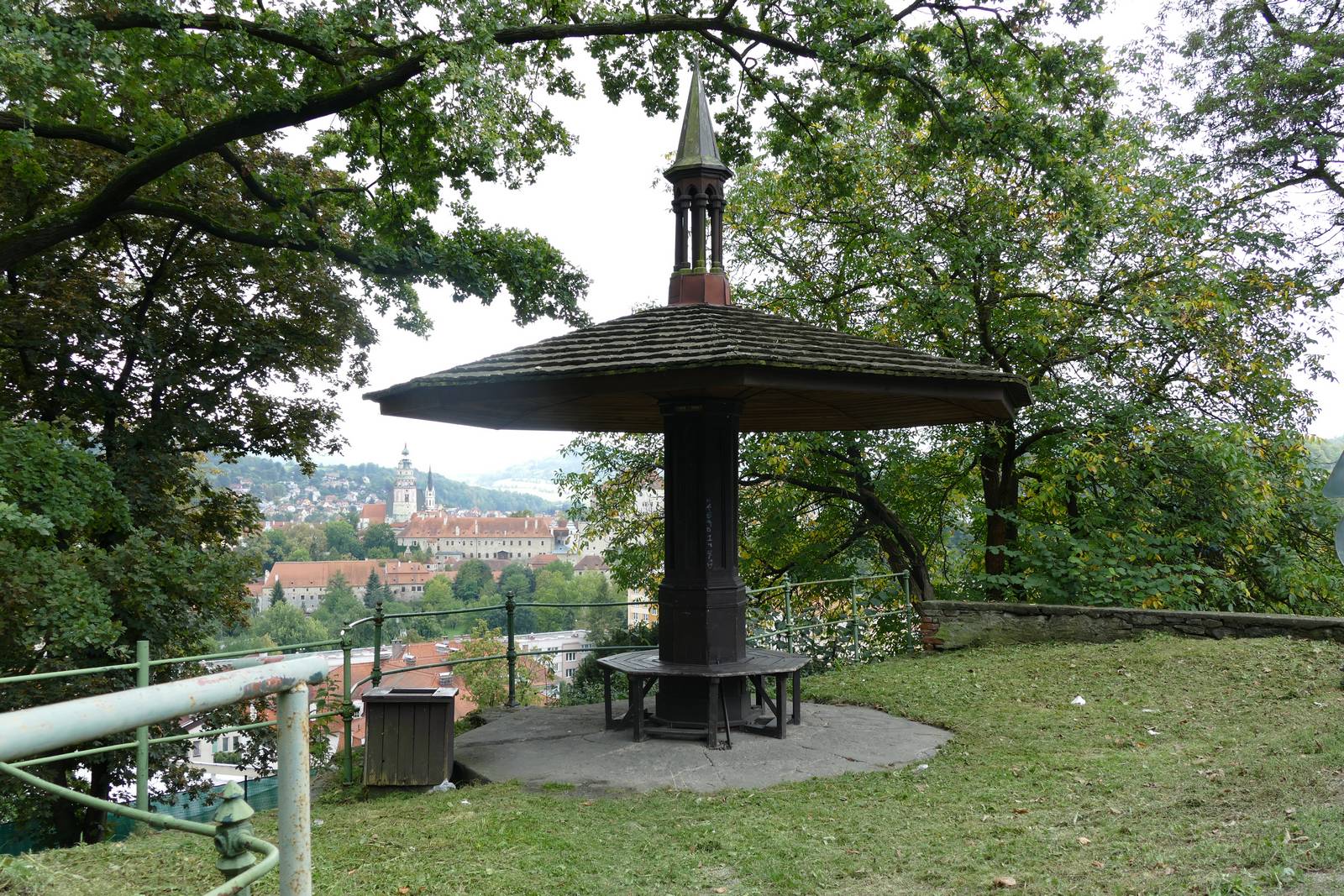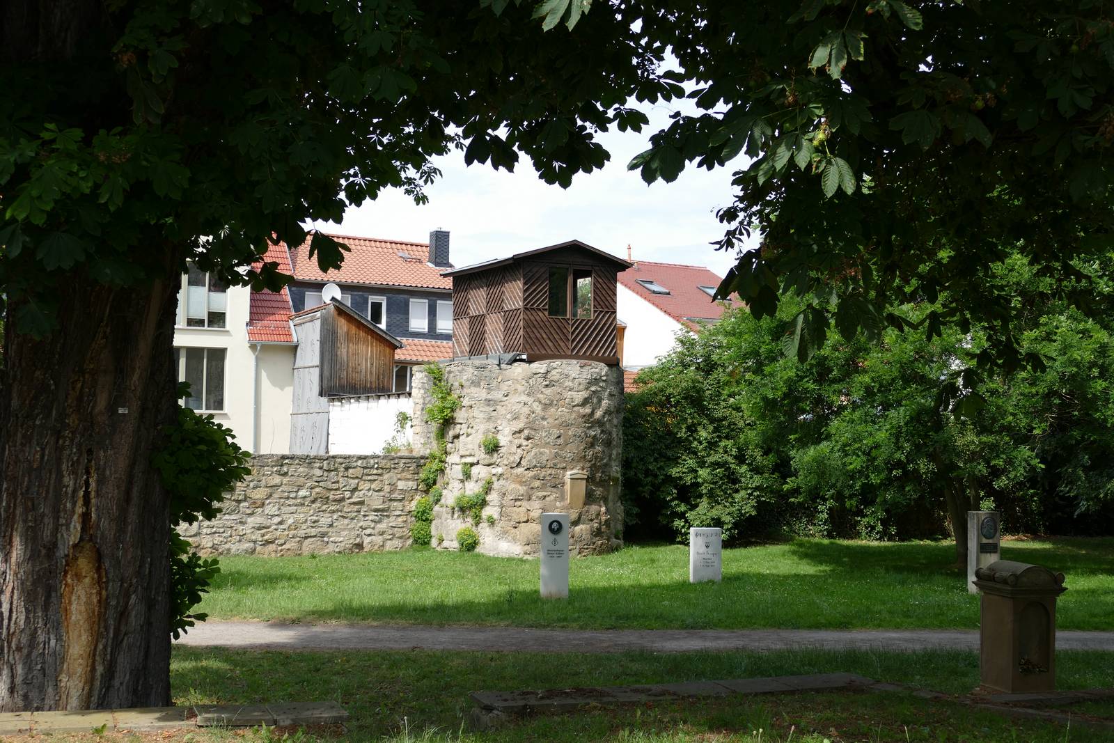 Das kleine Häuschen auf dem gemauerten Turm fanden wir ganz in der Nähe der Kirche.