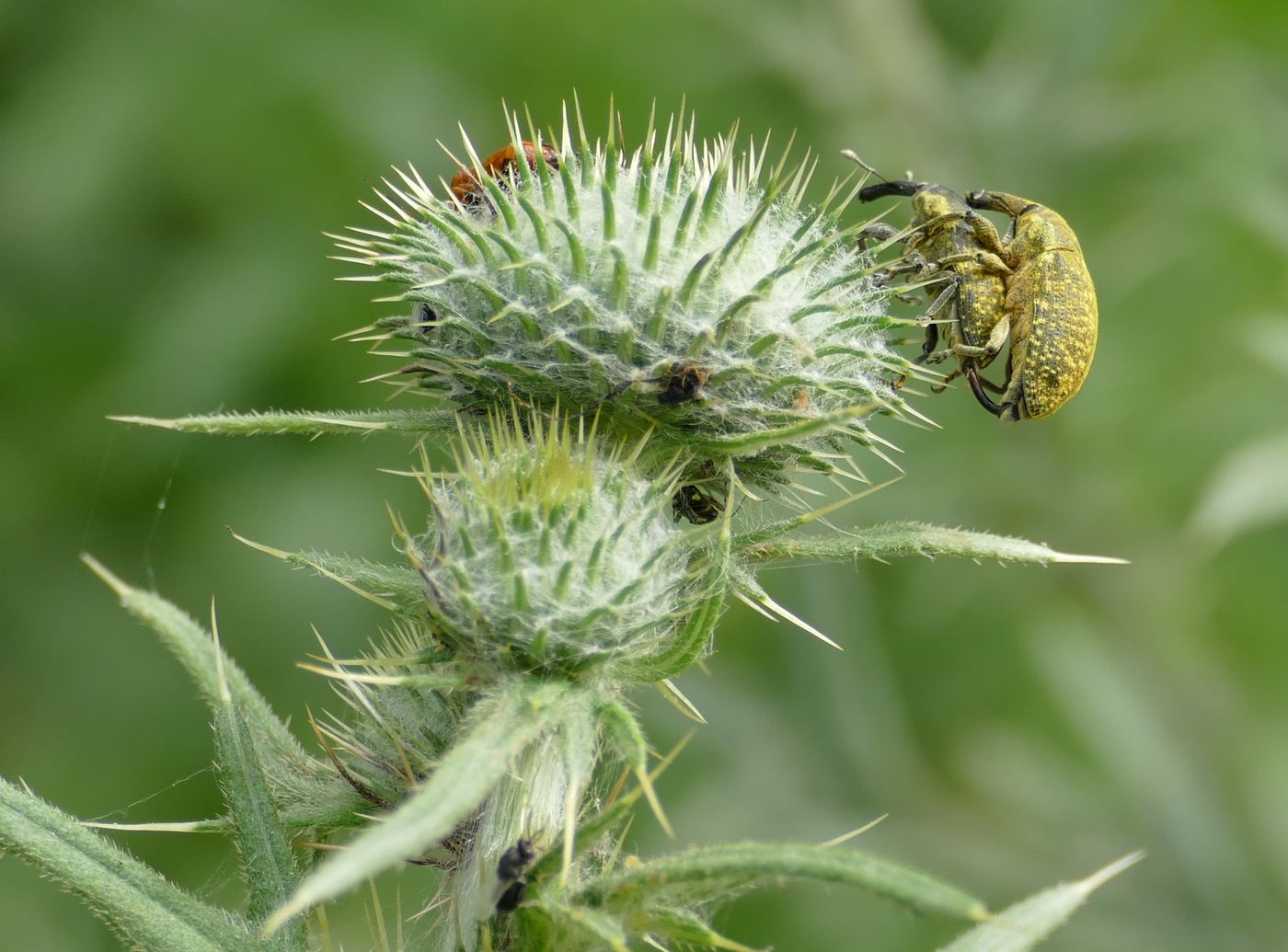 Dort sahen wir auch den beiden Rüsselkäfer bei der Paarung und auf einer Distelblüte