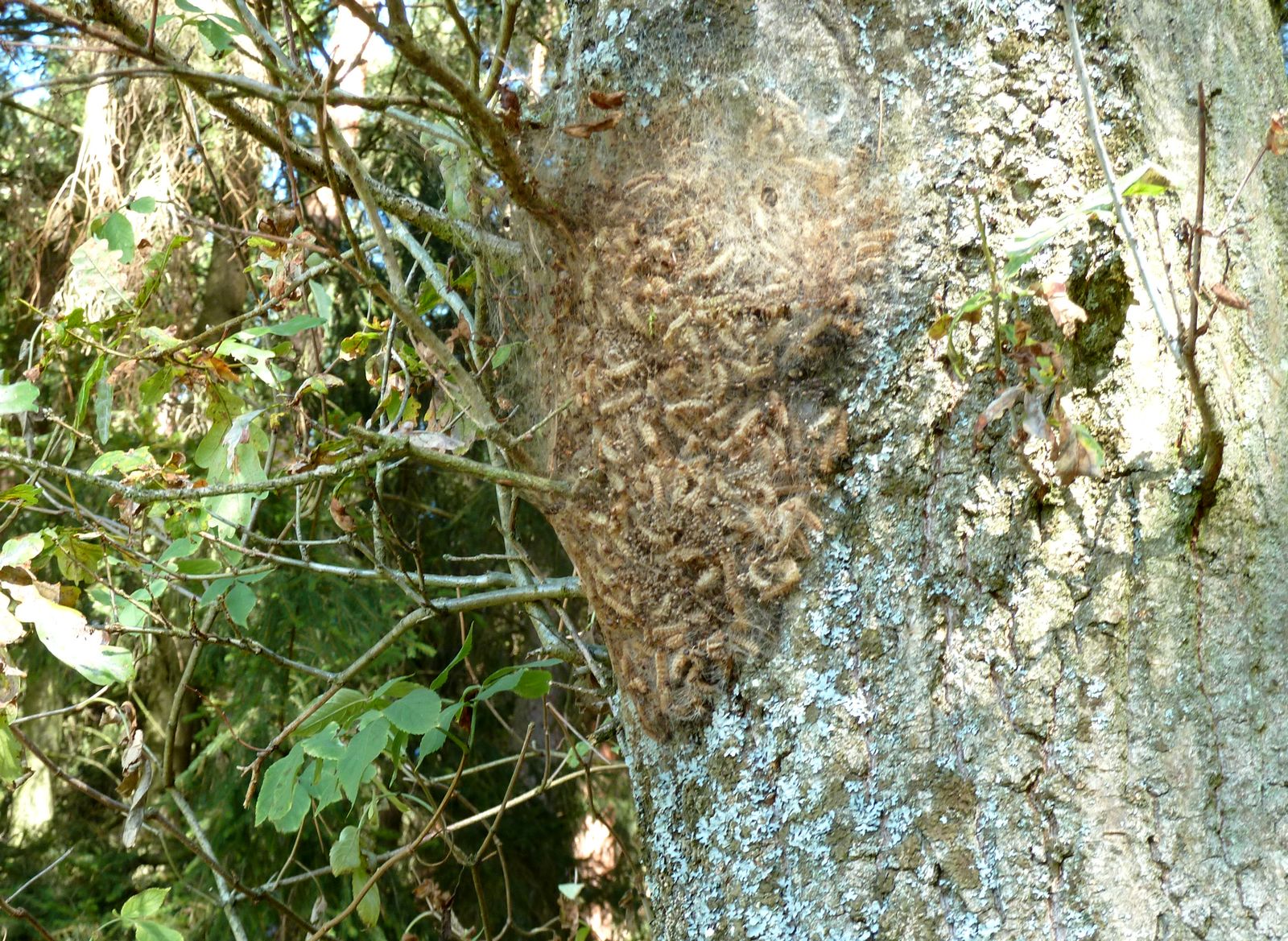 Das Bild zeigt ein aufgelassenes Netz des Eichenprozessionsspinners, das wir in der Nähe fanden.