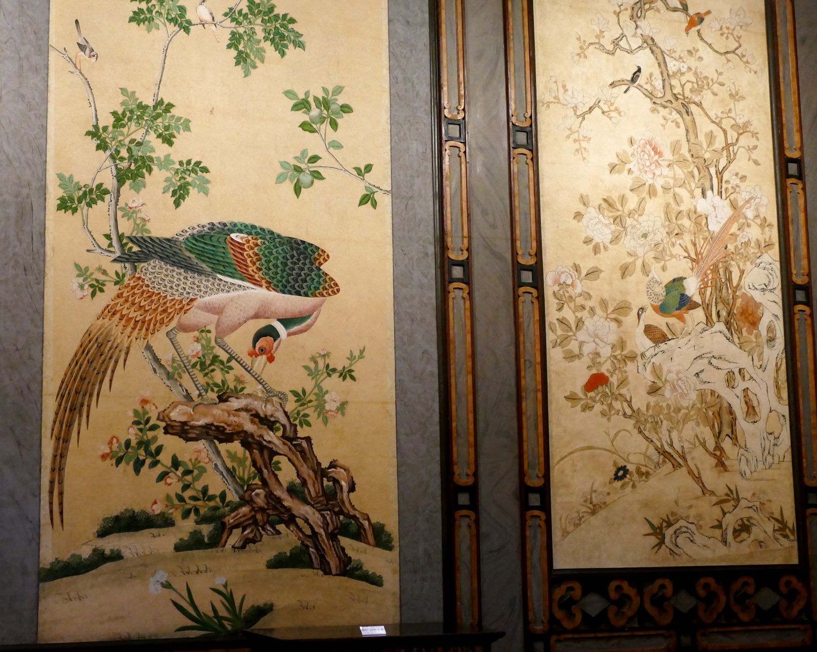 Das erste Bild zeigt die Bärenuhr in Dessau, das zweite Bild zeigt eine Wandmalerei im Schloss des Wörlitzer Parkes.