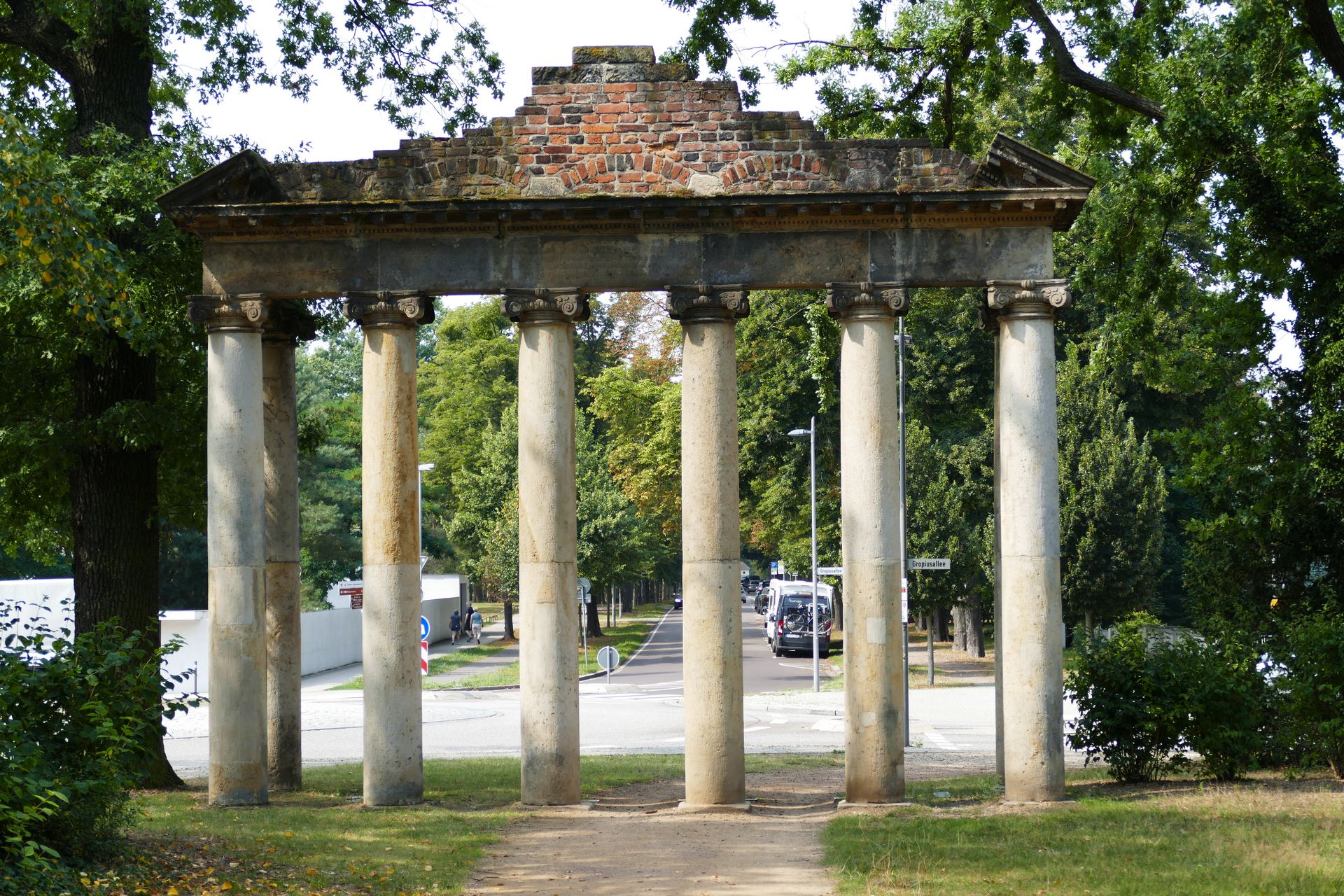 Das Bild zeigt das Tor mit 8 Säulen, von denen man meist nur 7 sieht.