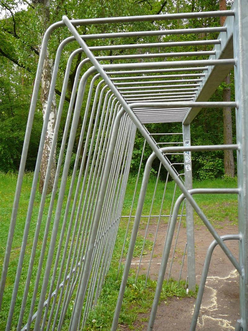alle Fahnenstangen, alle Pfosten, alle Bänke, alle Abfalleimer innen und außen, einen Pförtner