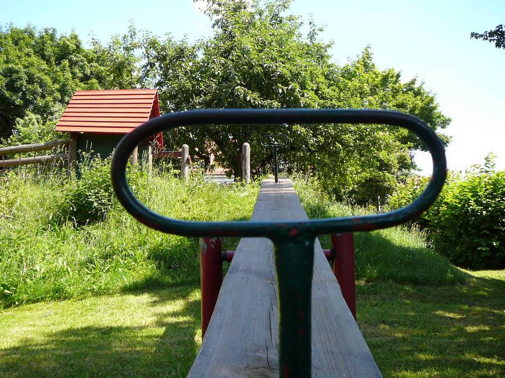 Am Spielplatz gibt es viel Holz, das man mit dem Spiegel absuchen kann....