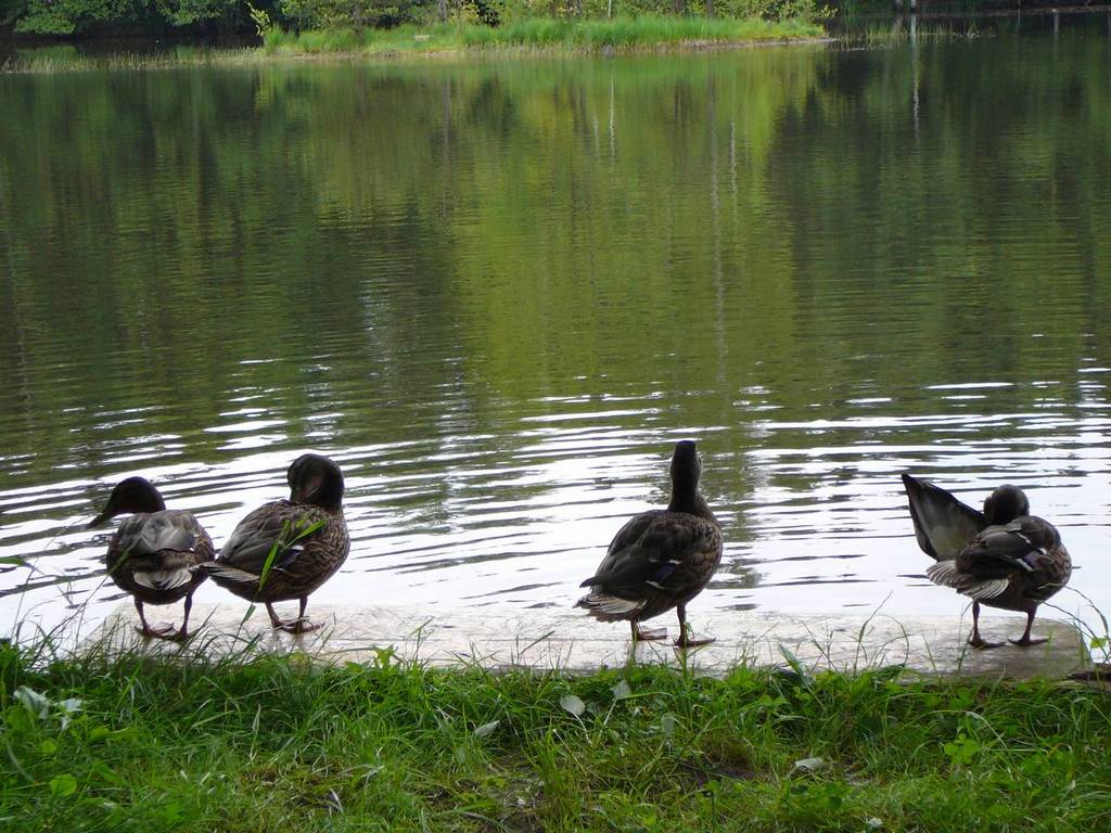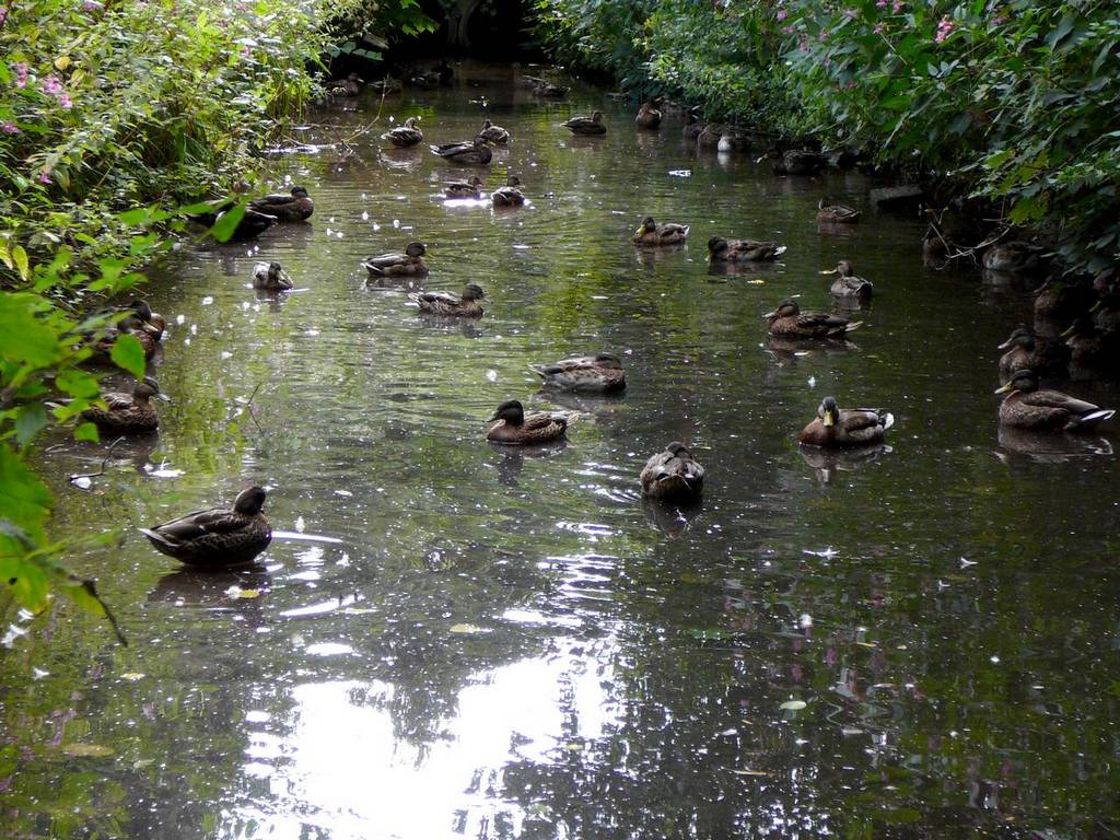 Die Enten waren bei mir gar nicht hungrig. Sie waren alle im Zufluss versammelt und haben gedöst.