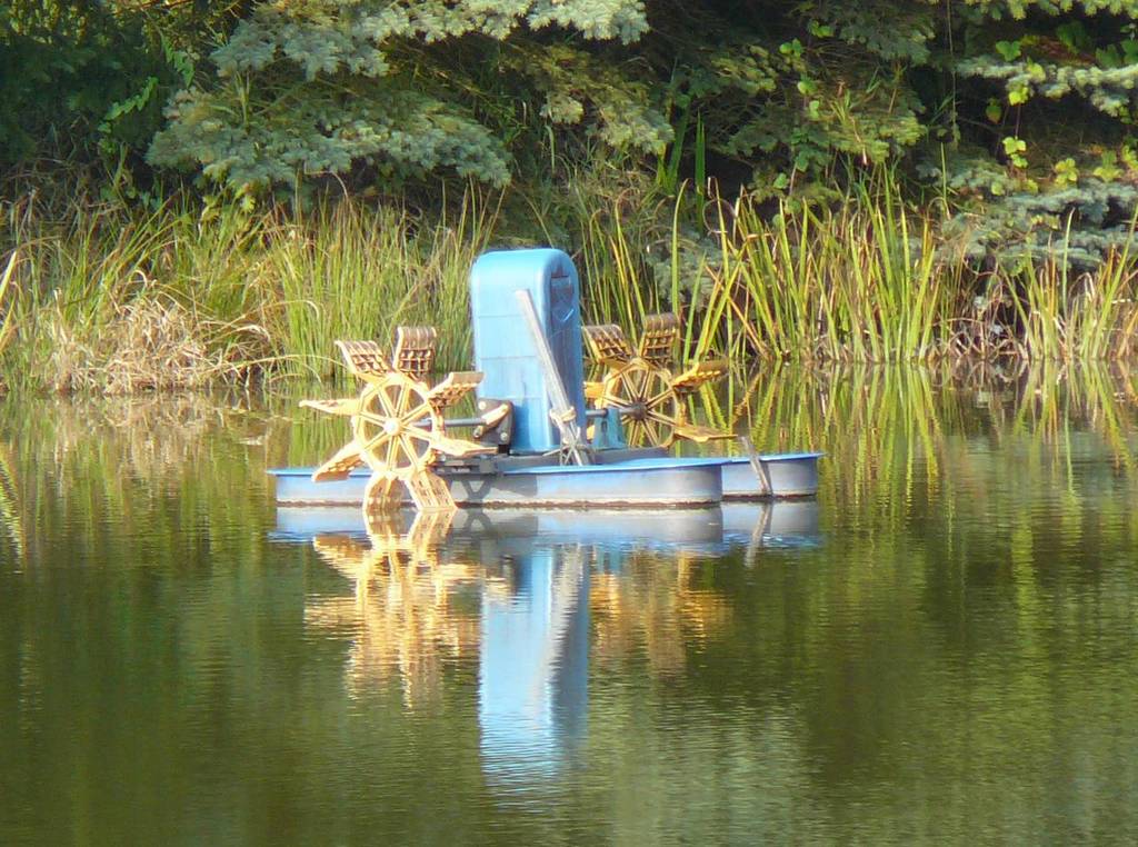 Auf dem Weiher bei Röttenbach fährt sogar ein Schaufelradboot.