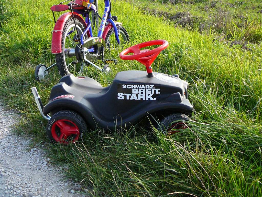 Was für ein Auto wohl der Papa des Kindes mit dem schwarzen Buggy fährt?